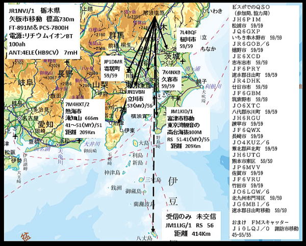 JR1NVJ(栃木県)、JH1DSL(千葉県)、JM1AVB茨城県)、JH1RDI(東京都) |